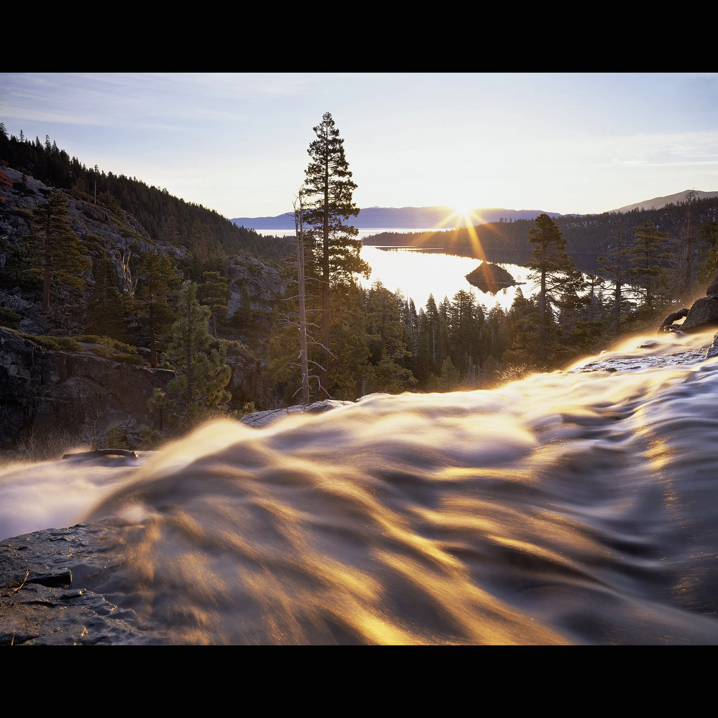 I had envisioned this image, with Eagle Falls rushing in the foreground, and a sunstar with first morning light backlighting the falls. Early summer provides heavy snow run off while the sun is in the ideal position for the composition. My large format camera allows for only one or two exposures before the sun stops refracting over the mountain top. On this morning, that was all I needed.